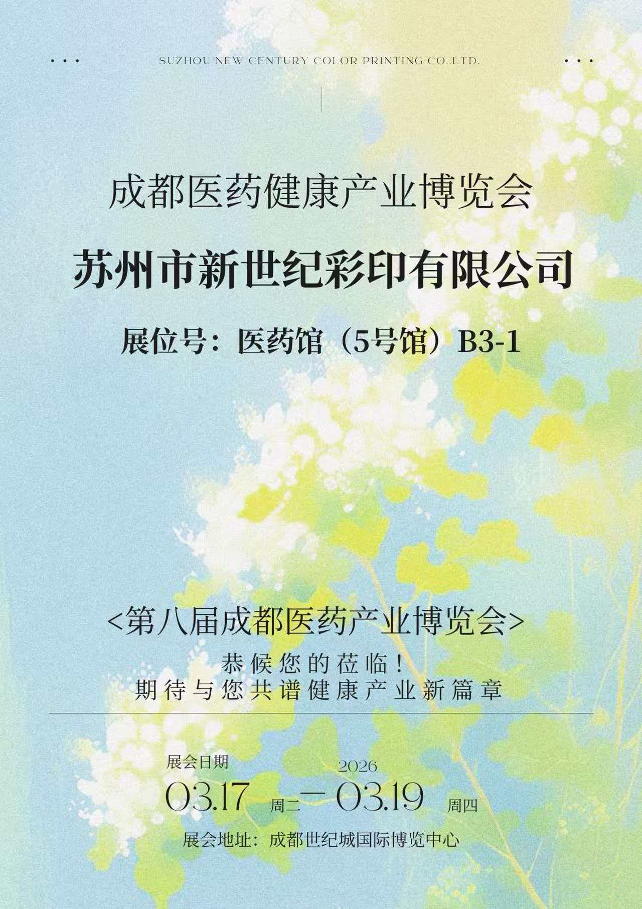 Dari 17 hingga 19 Mac 2026, Ekspo Industri Perubatan dan Kesihatan Chengdu ke-8 telah diadakan dengan meriah di Pusat Konvensyen dan Pameran Antarabangsa Chengdu Century City. Suzhou New Century Color Printing Co., Ltd. (selepas ini dirujuk sebagai "Percetakan Abad Baru") mendedahkan pencapaian terbarunya dalam bidang pembungkusan farmaseutikal di gerai B3-1 di Dewan Farmaseutikal (Dewan 5), secara menyeluruh mempamerkan kekuatan komprehensifnya dalam percetakan pembungkusan farmaseutikal, reka bentuk struktur dan perkhidmatan pematuhan. Ia menarik banyak syarikat farmaseutikal dan pakar industri untuk berhenti dan bertukar idea.